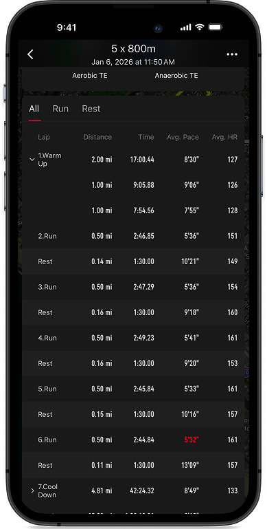 - Trainingsfokus: Filtere strukturierte Läufe so, dass nur deine aktiven Wiederholungen angezeigt werden – ohne unnötige Ablenkung.